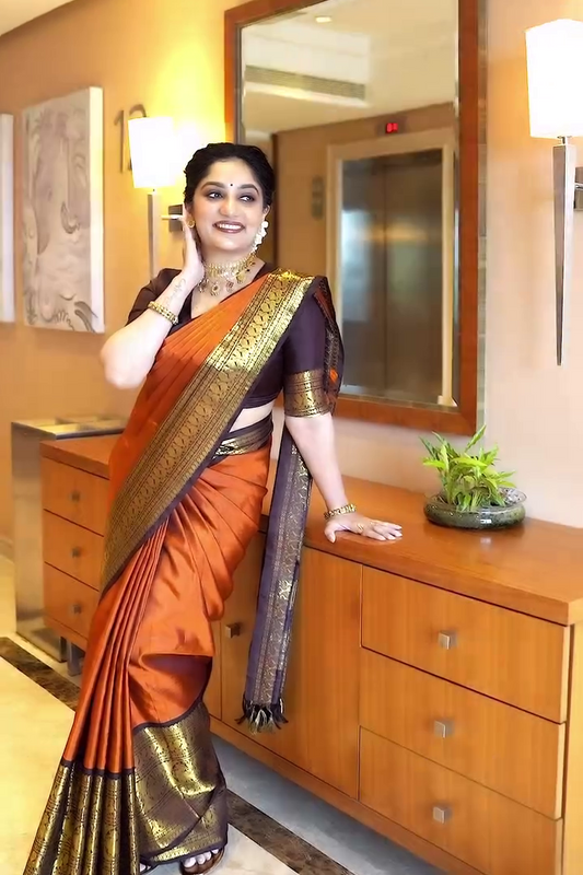 Brunt Orange Silk Saree